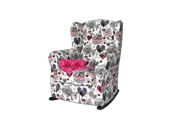 Balancín-mecedora de lactancia fabricada en estructura de madera y tapizada tanto en polipieles y tejidos antimanchas.