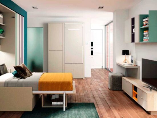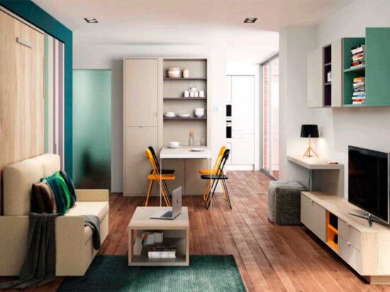 Amueblamiento pensado para espacios reducidos pero con el máximo aprovechamiento.