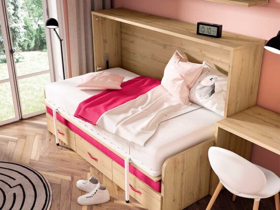 Cama abatible horizontal con sofá OT y cajones inferiores.