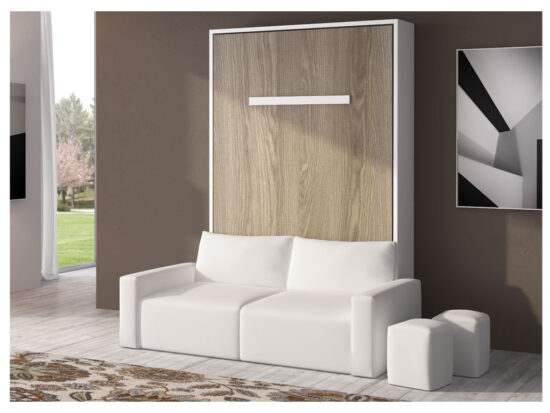 CAMA ABATIBLE CON SOFÁ Y 2 PUFFS.