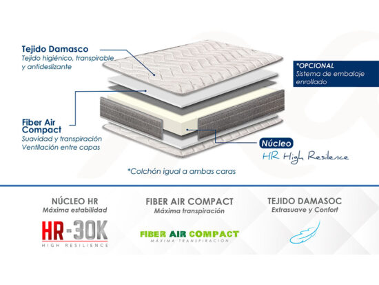 Etiquetas: altura 16 cm, antiacaros, antibacterias, antimoho, firmeza media alta, hr de 30 kg de densidad, sistema de doble transpiracion