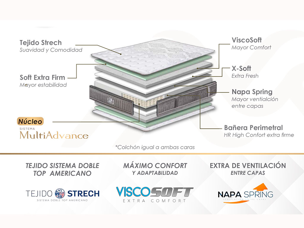 Colchon de muelle ensacado, triple refuerzo Box 360, nucleo sistema MultiAdvance.