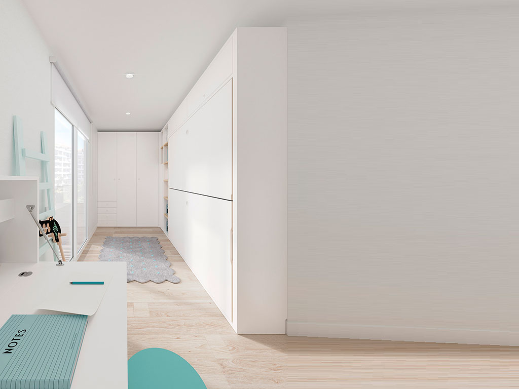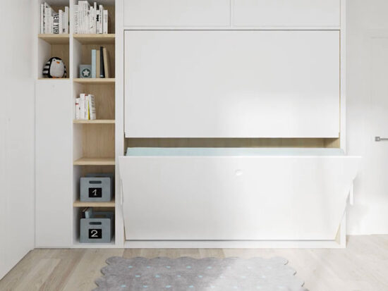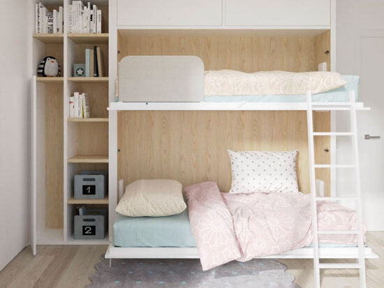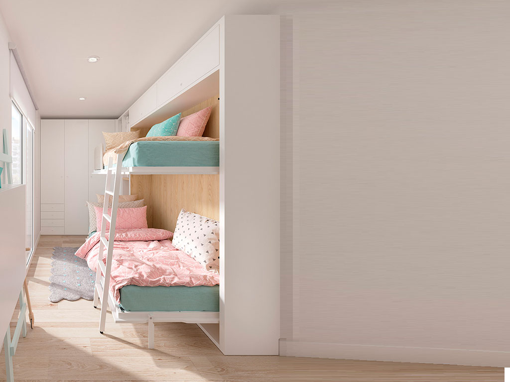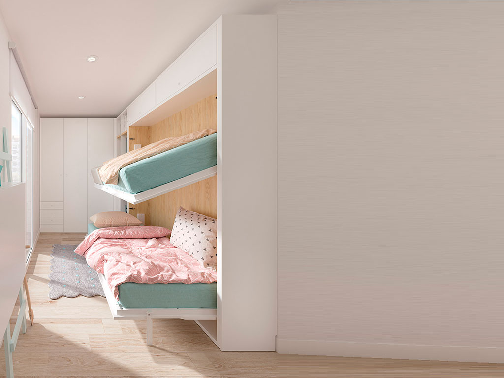 Litera abatible con cama superior basculante para facilitar el acceso para hacer la cama.