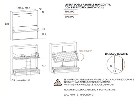 litera abatible con mesa y altillo OT75 transporte gratuito