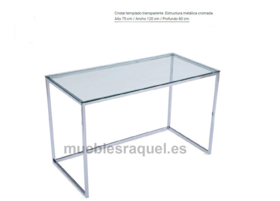 Mesa de cristal templado transparente. Estructura metálica cromada.