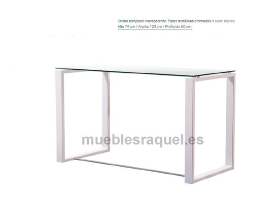 Mesa de cristal templado transparente. Patas metálicas cromadas o color blanco.