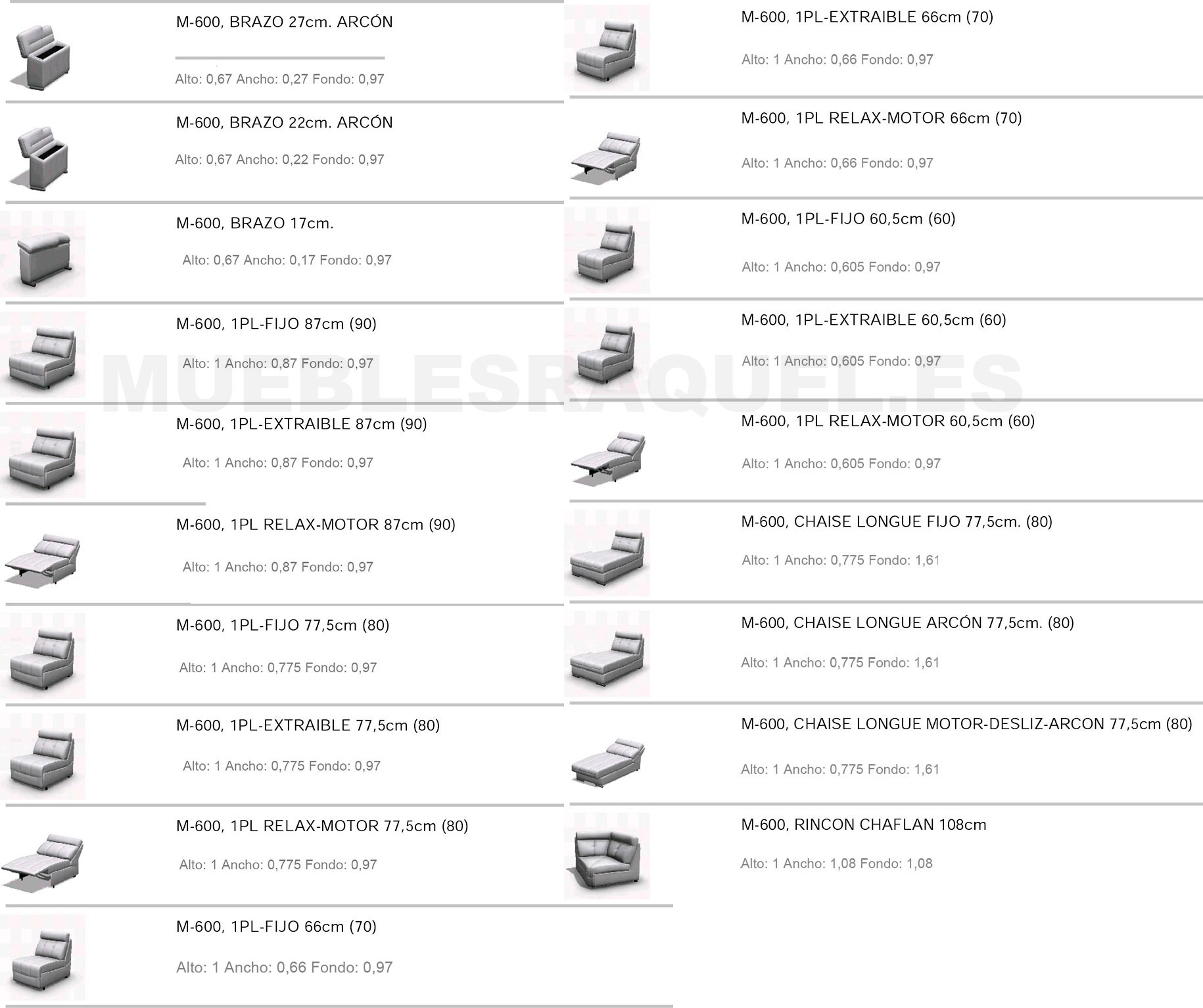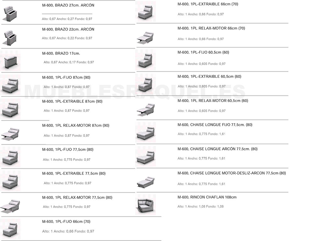 – Fondo Chaise longue motor tumbada: 195cm.