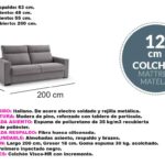 Él somier de este modelo de sofá cama es de una gran resistencia porque está fabricado con una malla electro-soldada, lo cual garantiza su mayor duración de vida. Tanto el colchón como los asientos son de una densidad de HR de 30 kg.