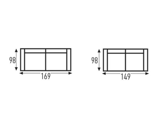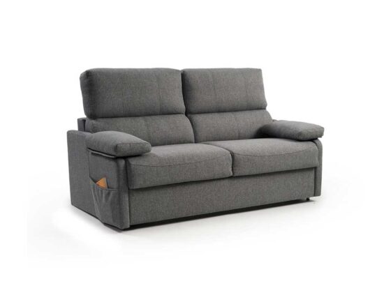 Él somier de este modelo de sofá cama es de una gran resistencia porque está fabricado con una malla electro-soldada, lo cual garantiza su mayor duración de vida. Tanto el colchón como los asientos son de una densidad de HR de 35 kg. Y damos la opción adicional de elegir el colchón de viscoelástica con incremento de 69€ más en el precio.