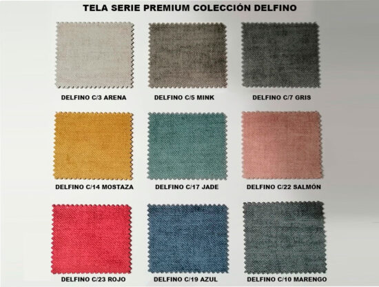 | LM TELAS | DELFINO C/3 ARENA, DELFINO C/5 MINK, DELFINO C/7 GRIS, DELFINO C/14 MOSTAZA, DELFINO C/17 JADE, DELFINO C/22 SALMÓN, DELFINO C/23 ROJO, DELFINO C/19 AZUL, DELFINO C/10 MARENGO, CHAPI MARENGO, CHAPI AZUL, CHAPI MARINO, CHAPI CREMA, CHAPI VISON, CHAPI CHOCOLATE, CHAPI OCEANO, CHAPI CUARZO, SENA BEIGE, SENA PIEDRA, SENA PLATA, SENA GIALLO, SENA TURQUESA, SENA AZUL, SENA AZUL ELECTRICO, SENA MARENGO, SENA CUERO, SENA CHOCO, SENA GRIS, CHESTER C/1 CRUDO, CHESTER C/3 CAMEL, CHESTER C/11 VISON, CHESTER C/55 ROSA, CHESTER C/17 CIELO, CHESTER C/10 AZUL, CHESTER C/43 PLATA, CHESTER C/37 ANTRACITA, CHESTER C/47 GRIS HUMO, NATURA C/01 BEIGE, NATURA C/03 SAND, NATURA C/05 MINK, NATURA C/11 PAPAYA, NATURA C/14 JADE, NATURA C/18 AZURE, NATURA C/27 PEARL, NATURA C/25 STEEL, NATURA C/23 ANTRACITA, POMPEYA C/2 CAMEL, POMPEYA C/3 VISÓN, POMPEYA C/4 MARRÓN, POMPEYA C/5 MANGO, POMPEYA C/6 GRANATE, POMPEYA C/7 TURQUESA, POMPEYA C/8 ROSA, POMPEYA C/9 GRIS, POMPEYA C/10 MARENGO |